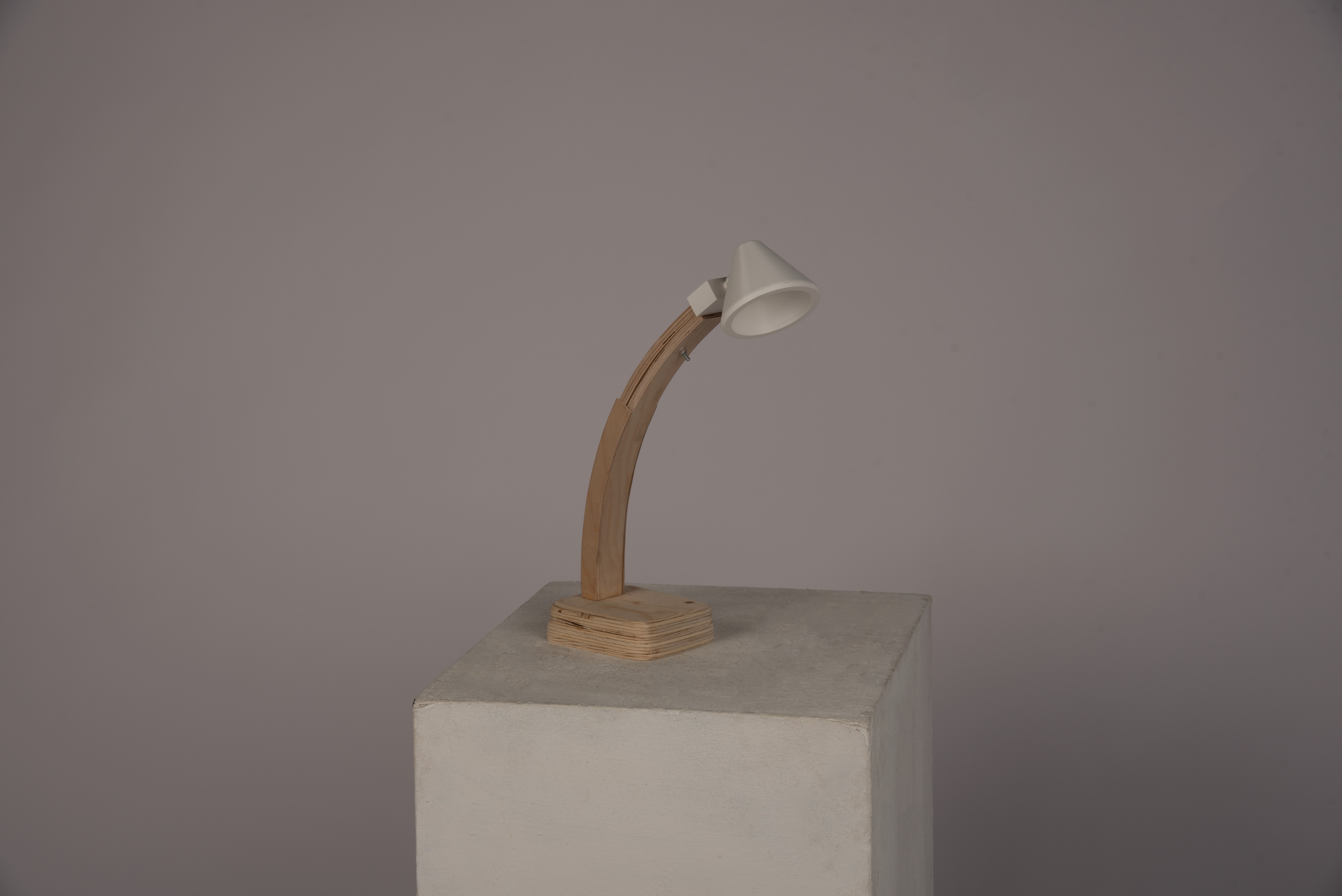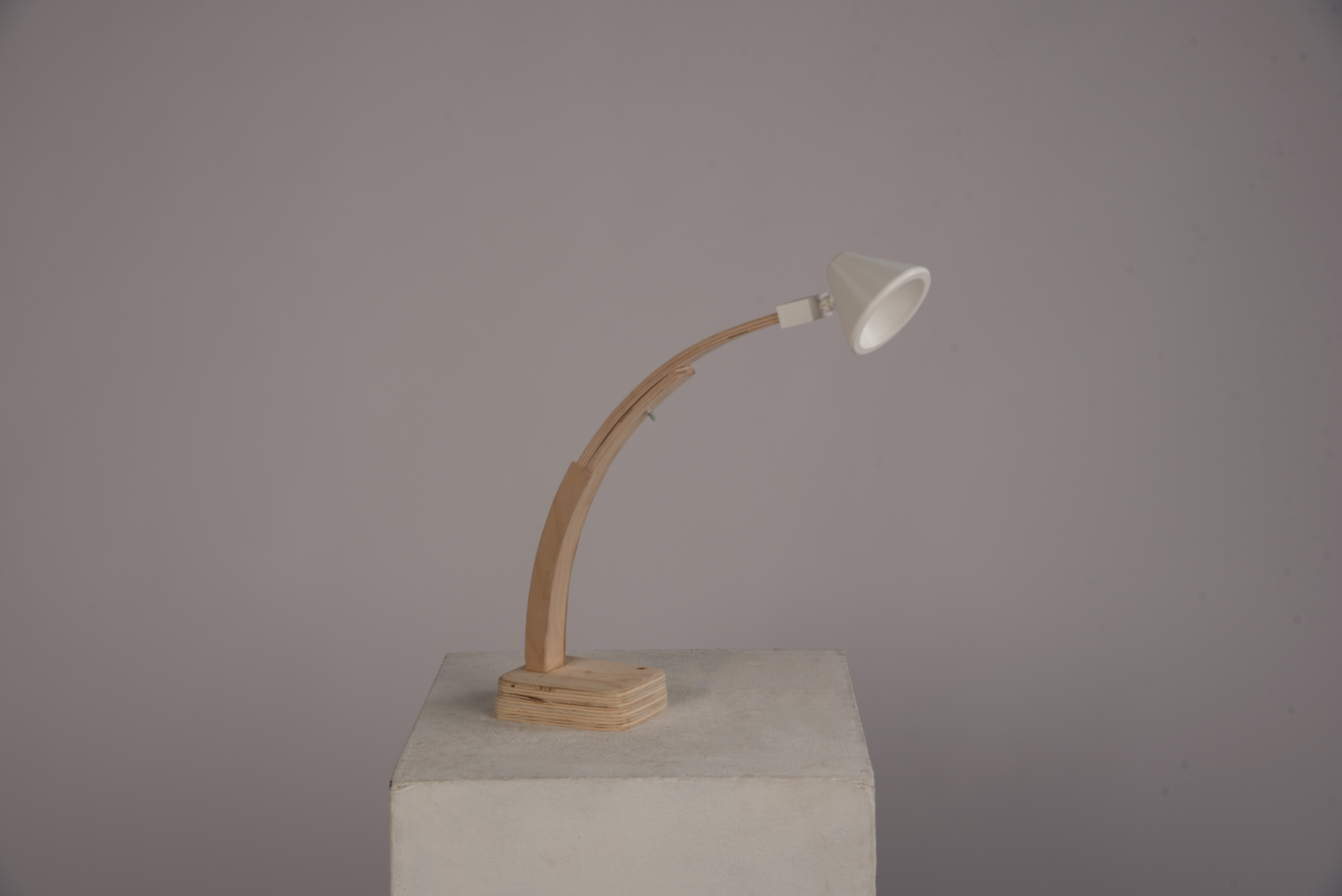 The lamp body consists of 2 pieces of laminated plywood that create a beautiful arch, as well as an collapsible feature so users can adjust where the light shines.